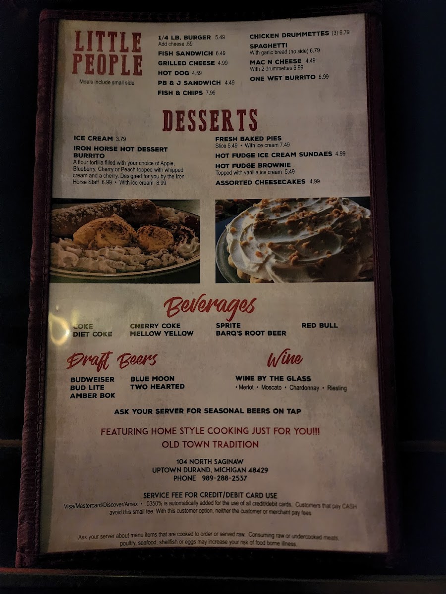 Welcome to Iron Horse Pub of Durand, a hidden gem nestled in the heart of Durand, MI. This local pub serves up a vibrant menu that's classic yet inventive, featuring their signature Steakburgers. Each burger is crafted with quality ingredients, combining flavors like smoked bacon, Swiss cheese, and spicy taco sauce. The staple Omelettes showcase the same dedication to flavor, with options like the Irish with corned beef that promises a heartwarming start to your day.